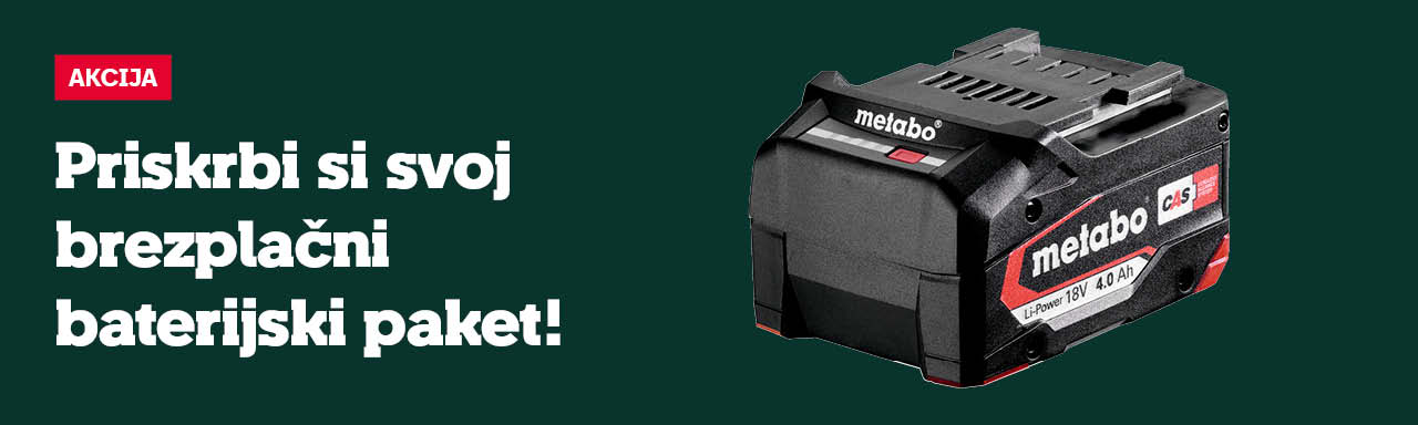 Kupite enega od sodelujočih baterijskih električnih orodij Metabo, ga registrirajte in si zagotovite baterijski paket LiPOWER 4,0 Ah.