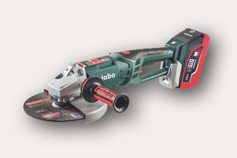Z WPB 36 LTX BL 230 Metabo predstavlja prvi veliki baterijski kotni brusilnik na svetu za brusne plošče 230 mm. Z eno 36 V ali dvema 18 V baterijama dosega zmogljivost 2.400 W električnega stroja. To je dovolj moči ne le za katero koli električno ročno orodje, temveč tudi za lesno obdelovalne stroje, kot so zajeralne mizne žage. Vizija gradbišča brez kablov je postala resničnost.